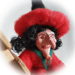 Für die Herstellung gibt es keine Schablone. Jede Hexe ist im Detail, in der Größe und Farbe verschieden und ein Unikat.