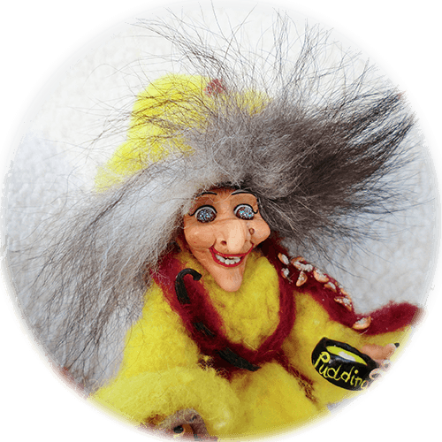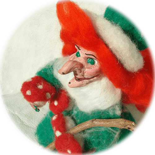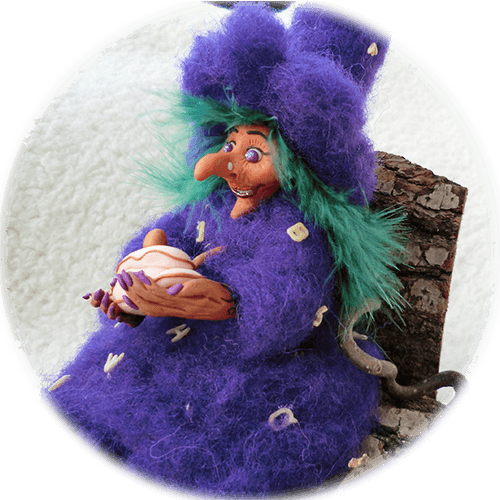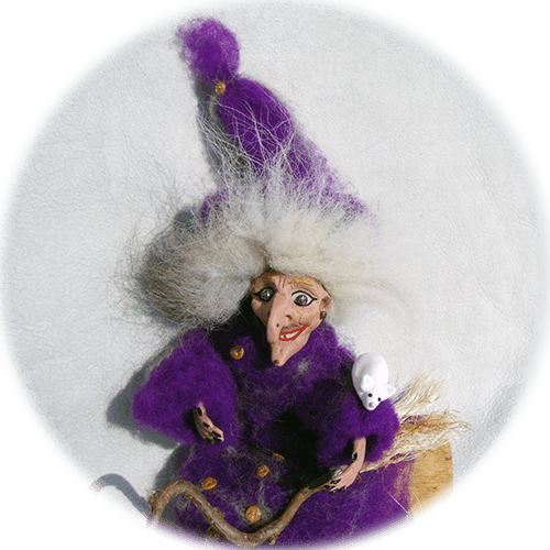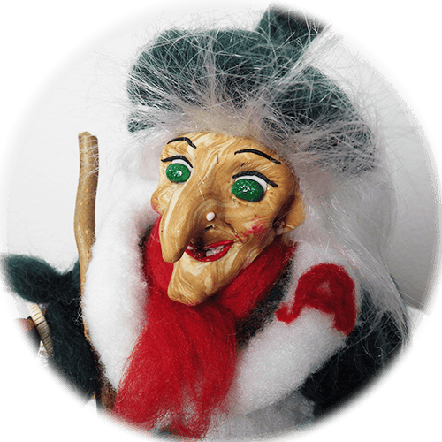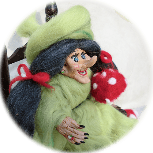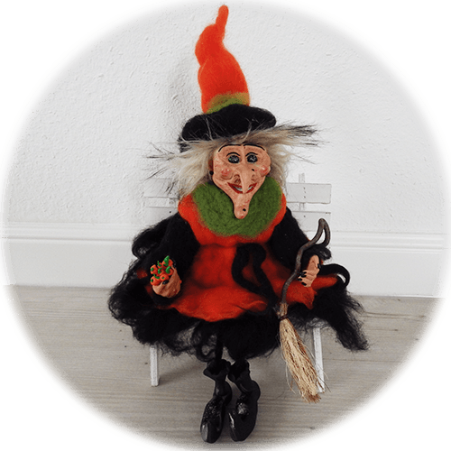 Für die Herstellung gibt es keine Schablone. Jede Hexe ist im Detail, in der Größe und Farbe verschieden und ein Unikat.